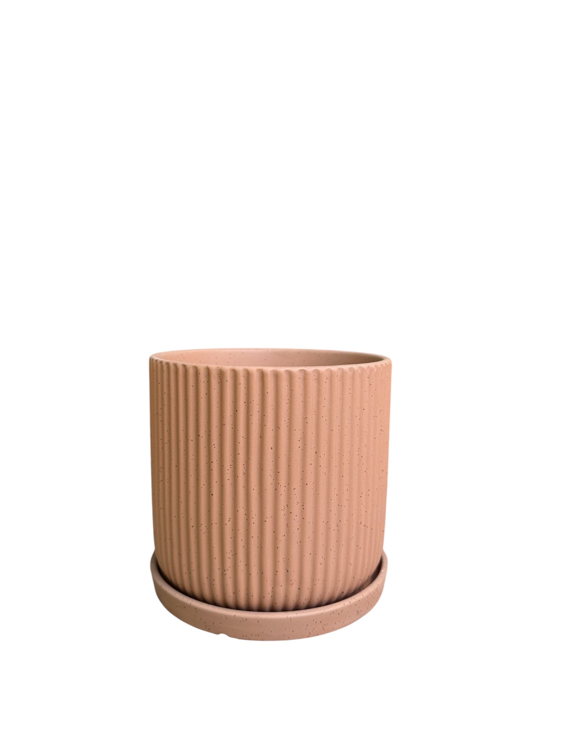 כלי שתילה בקוטר 15 ס"מ בצבע ורוד עתיק פסים נקודות
