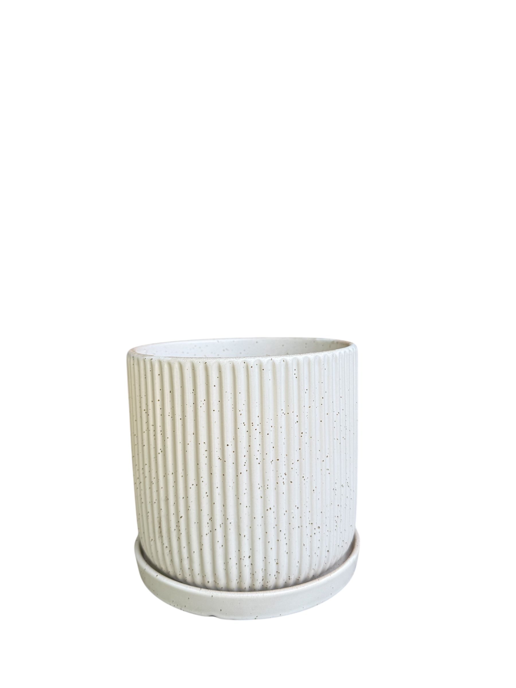 כלי שתילה בקוטר 15 ס"מ בצבע לבן פסים נקודות
